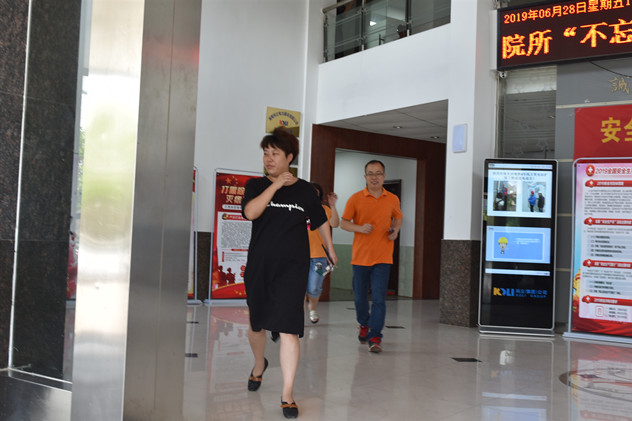 公司專門成立演練領(lǐng)導(dǎo)小組,由公司黨委書記兼總經(jīng)理陳可夫擔(dān)任消防應(yīng)急演練組長,對演練程序、人員分工進(jìn)行全面指揮、部署,公司職能部門負(fù)責(zé)人及辦公樓所有員工參與本次演練。集團(tuán)公司副總經(jīng)理吳元坤、集團(tuán)安全部李兵等一行及電子所、醫(yī)工所、機(jī)械院有關(guān)負(fù)責(zé)人觀摩演練。